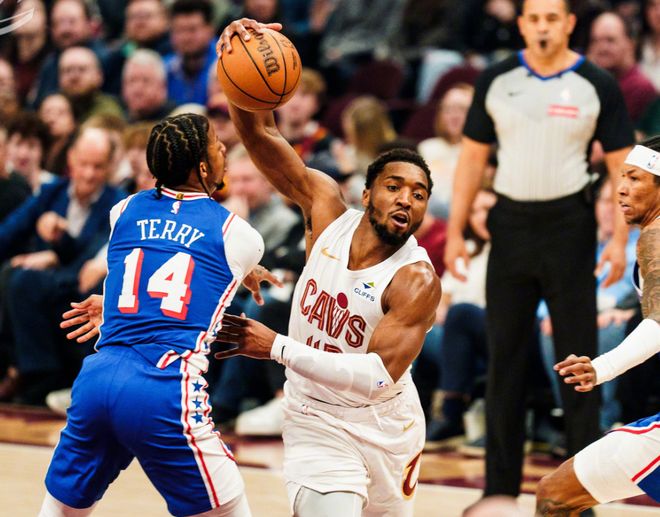 骑士数据,哈登21分5篮板5助攻,米切尔17分6助攻,莫布里15分8篮板3盖帽,韦德13分10篮板,埃利斯19分,泰森11分。一场没有太大悬念的比赛,从阵容来看,残阵76人很难给骑士制造威胁。骑士虽然大比分赢球,但和前面几场比赛一样,主帅阿特金森在衔接段特别喜欢用三个小后卫同时在场,但效果确实不太好,防守压制力不足,而且进攻开发非常依赖哈登的持球突破。托布和莫布里两人,从挡拆效果来看,不如阿伦给哈登帮助大。